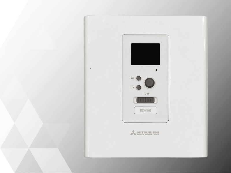 Il dispositivo di controllo RC-HY40-W consente la gestione e regolazione degli impianti centralizzati e autonomi realizzati con Hydrolution, supportando un utilizzo più efficiente e consapevole del sistema.
